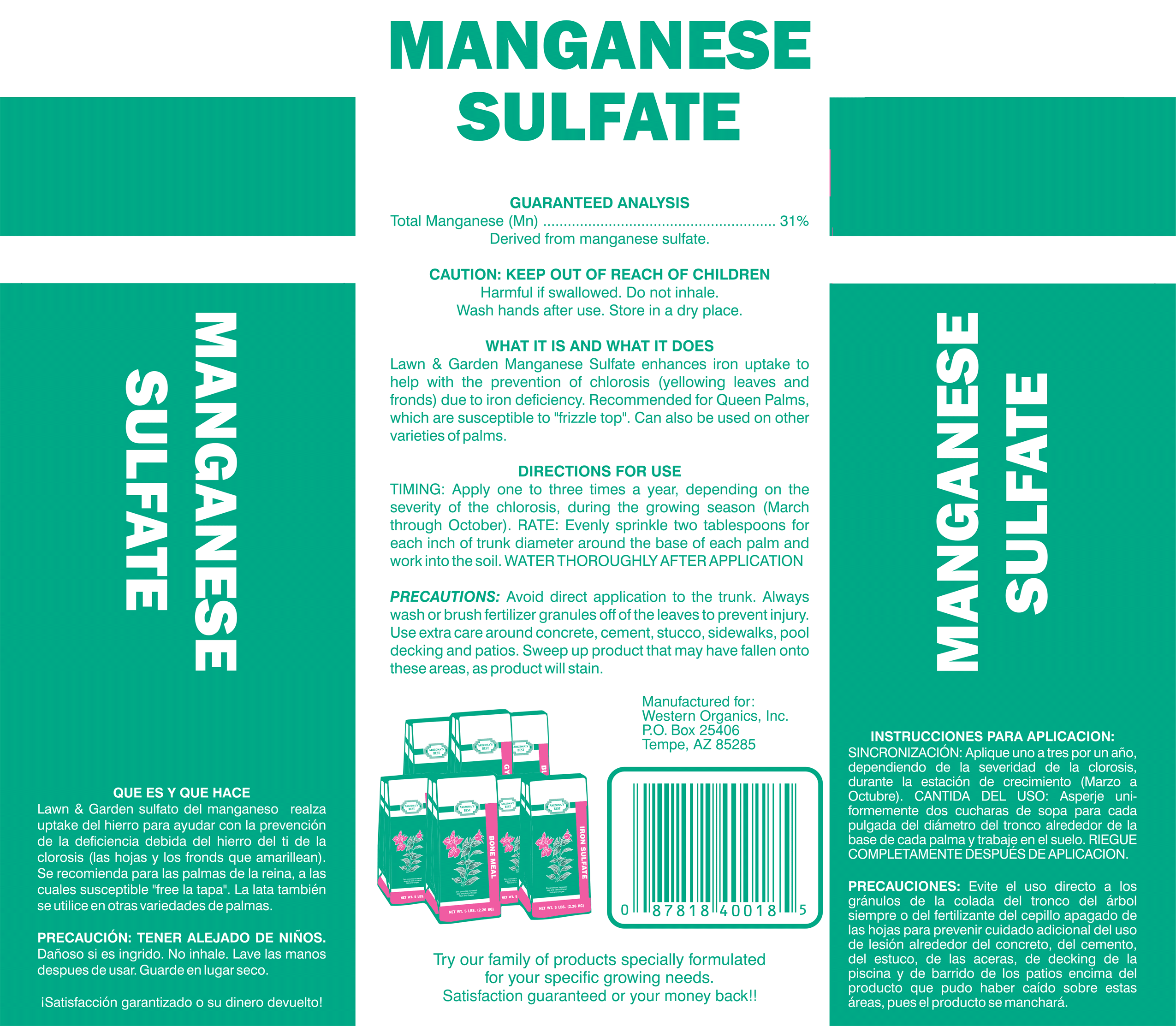 Arizona’s Best Manganese Sulfate enhances iron uptake to help with the prevention of chlorosis (yellowing leaves and fronds). Recommended for Queen Palms, which are susceptible to “frizzle top” and can also be used on other varieties of palms.