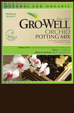 GRO-WELL Orchid Potting Mix offers and outstanding medium for either planting or repotting all types of orchids. Created by expert agronomists, this product is composed of sphagnum peat moss, small-fir bark, perlite and screened pumice. Use this product to help create a suitable root environment, moisture and nutrient retention, and improved drainage.