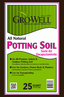 GRO-WELL All Natural Potting Soil is regionally formulated by local gardeners for local gardeners. Its all natural formula makes it a good all-purpose potting soil for indoor and outdoor potted plants, raised beds and boxes, borders and containers. The soils natural blend is a good general purpose growing medium for flowers, vegetables, herbs, roses, nursery shrubs and ornamentals. Use this soil when transplanting growing plants to larger containers or pots, or anytime a fresh potting soil is needed.