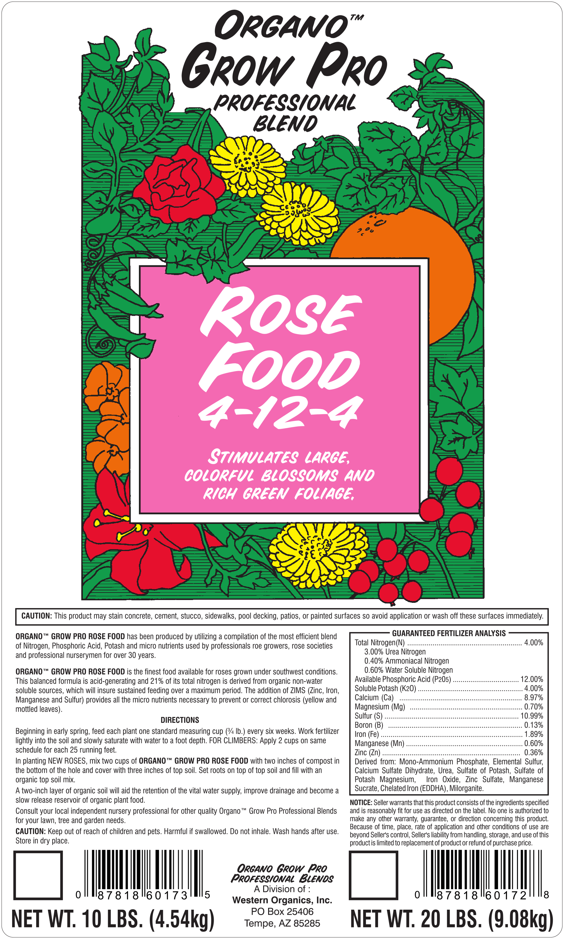 Organo Grow Pro Rose Food has been produced by utilizing a compilation of the most efficient blend of nitrogen, phosphoric acid, potash and micro nutrients used by professional roe growers, rose societies and nurseries for over 30 years.