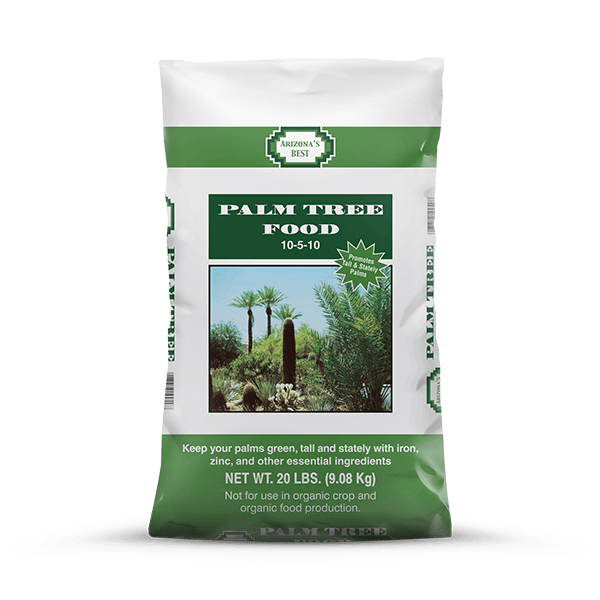 Arizona’s Best Palm Tree Food has an N, P and K ratio of 10-5-10 provides a formula of nutrients including iron, manganese and zinc to help grow vigorous, attractive palm trees under tough alkaline soil conditions. Feed palm trees at least six times a year during the growing season, avoiding periods of extreme heat or extreme cold.