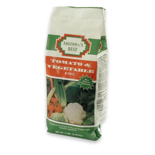 Arizona’s Best Tomato & Vegetable Food with an N, P and K of 8-10-3 contains the necessary nutrients to aid in the development of plant growth and crop yield for healthier, bigger and more flavorful vegetables. Most vegetables are classified as either “cool season” or “warm season” crops. Your cool season crops are generally the “leafy-type” vegetables. Including lettuce, broccoli, cabbage, cauliflower, etc. As a general rule of thumb, vegetables should be fertilized every three to four weeks during their growing season. It is preferred to use lighter but more frequent applications for better yields and higher quality.
