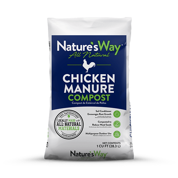 Nature’s Way Chicken Manure Compost is a blend of aged composted forest by products and composted poultry manure that stimulates existing beneficial bacteria and encourages healthy soil. Nature’s Way Poultry Compost is a valuable soil conditioner, ideally suited for amending compacted soils. Use Poultry Compost on lawns, vegetable gardens, flower beds, trees and shrubs.