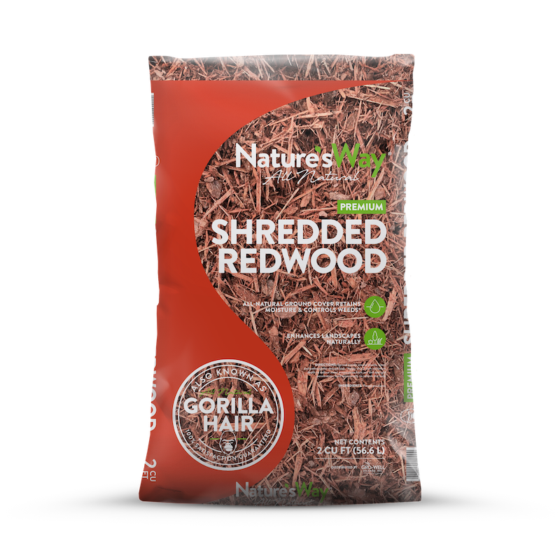 Made from fibrous redwood bark, this mulch is a decorative groundcover that retains moisture, insulates soil, and protects plant roots from erosion. Rich in its reddish-brown color, it’s mechanically shredded to provide a different—yet beautiful—texture.